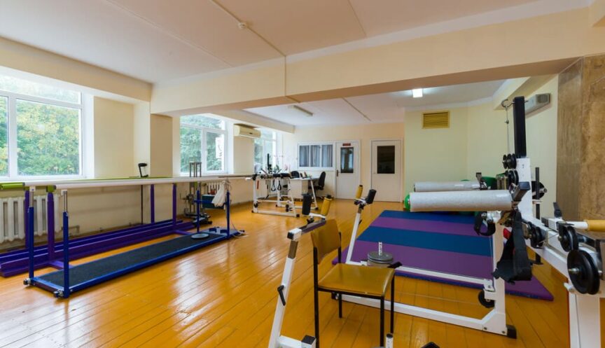 Тренажерный зал для восстановительного лечения оборудован всем необходимым.